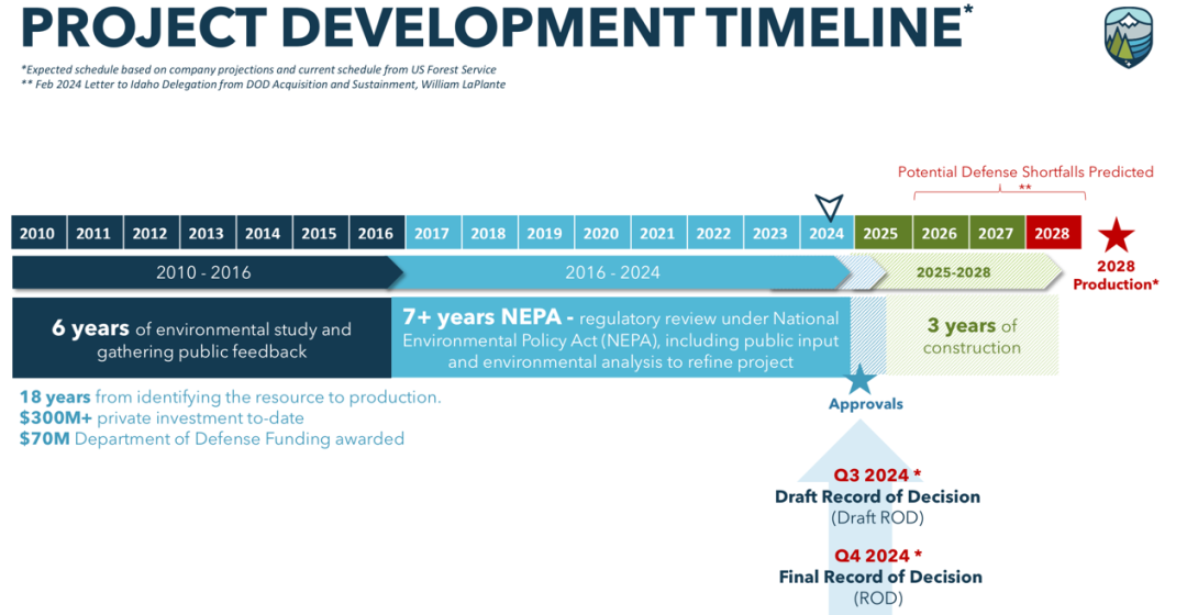公司官网上该项目的最新动态停留在2025年1月6日宣布取得森林部门许可,而此前他们已经历了8年旷日持久的申请,接下来仍需为筹措资金以及获得最终采矿许可做准备。根据公司提供的计划表,最快也要2028年开始生产。